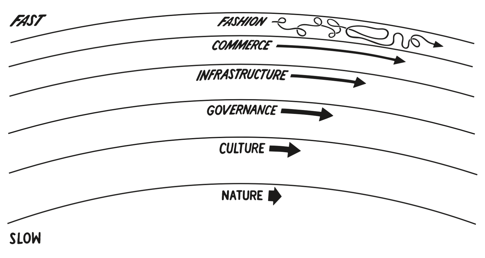 - Society tends to focus its attention on the fast-moving layers, but the slow-moving ones have all the power. They tend to control and constrain the fast-moving layers.